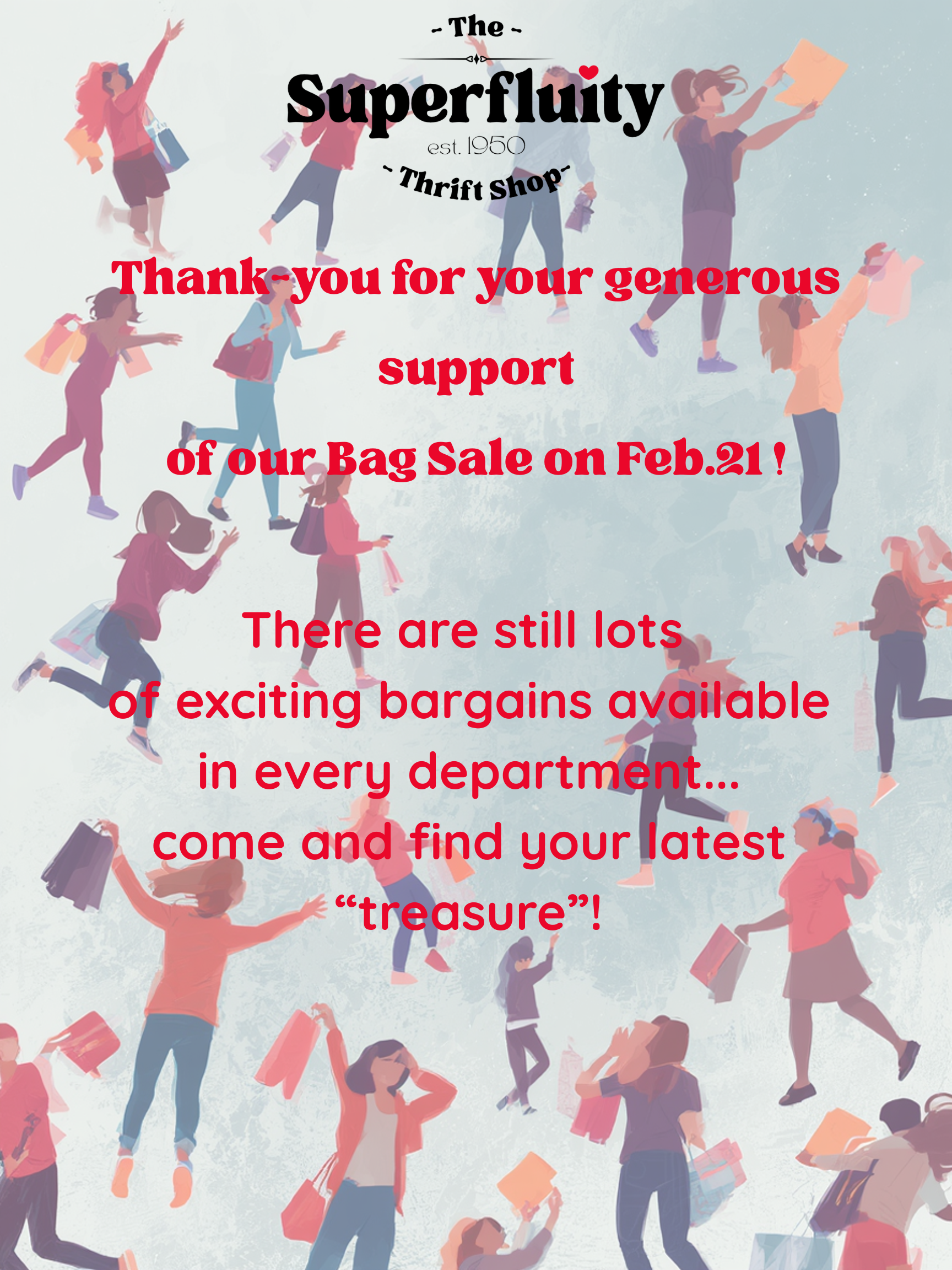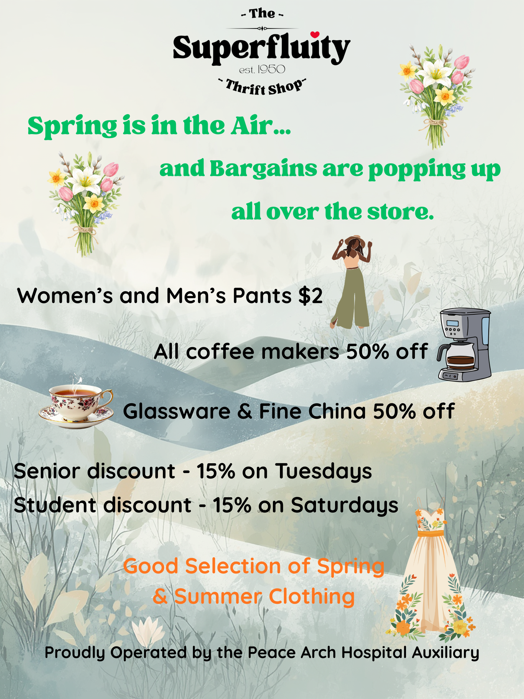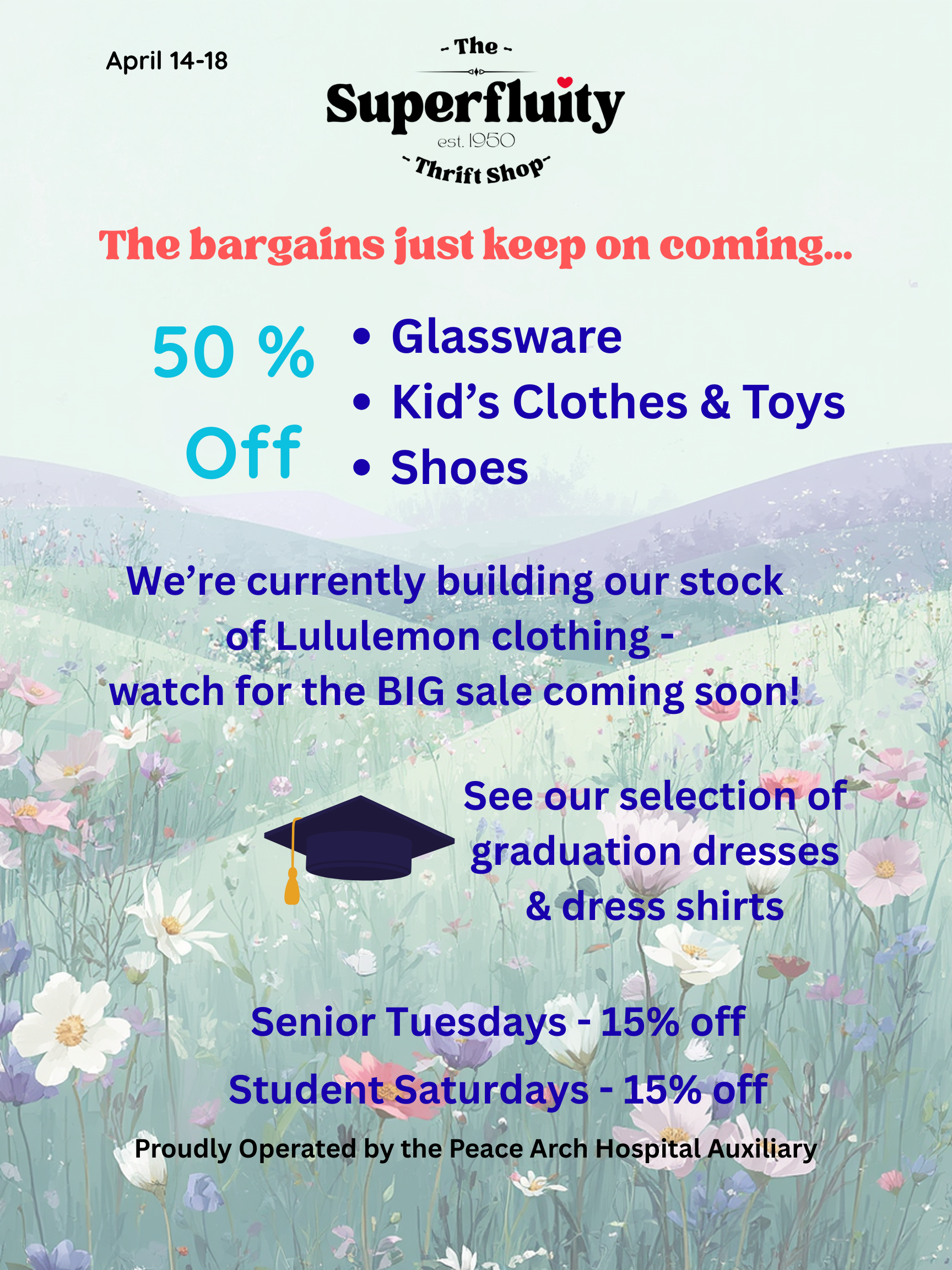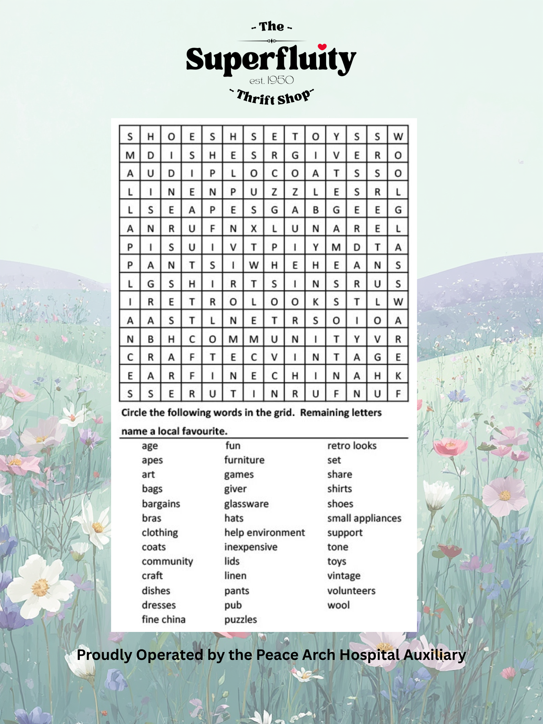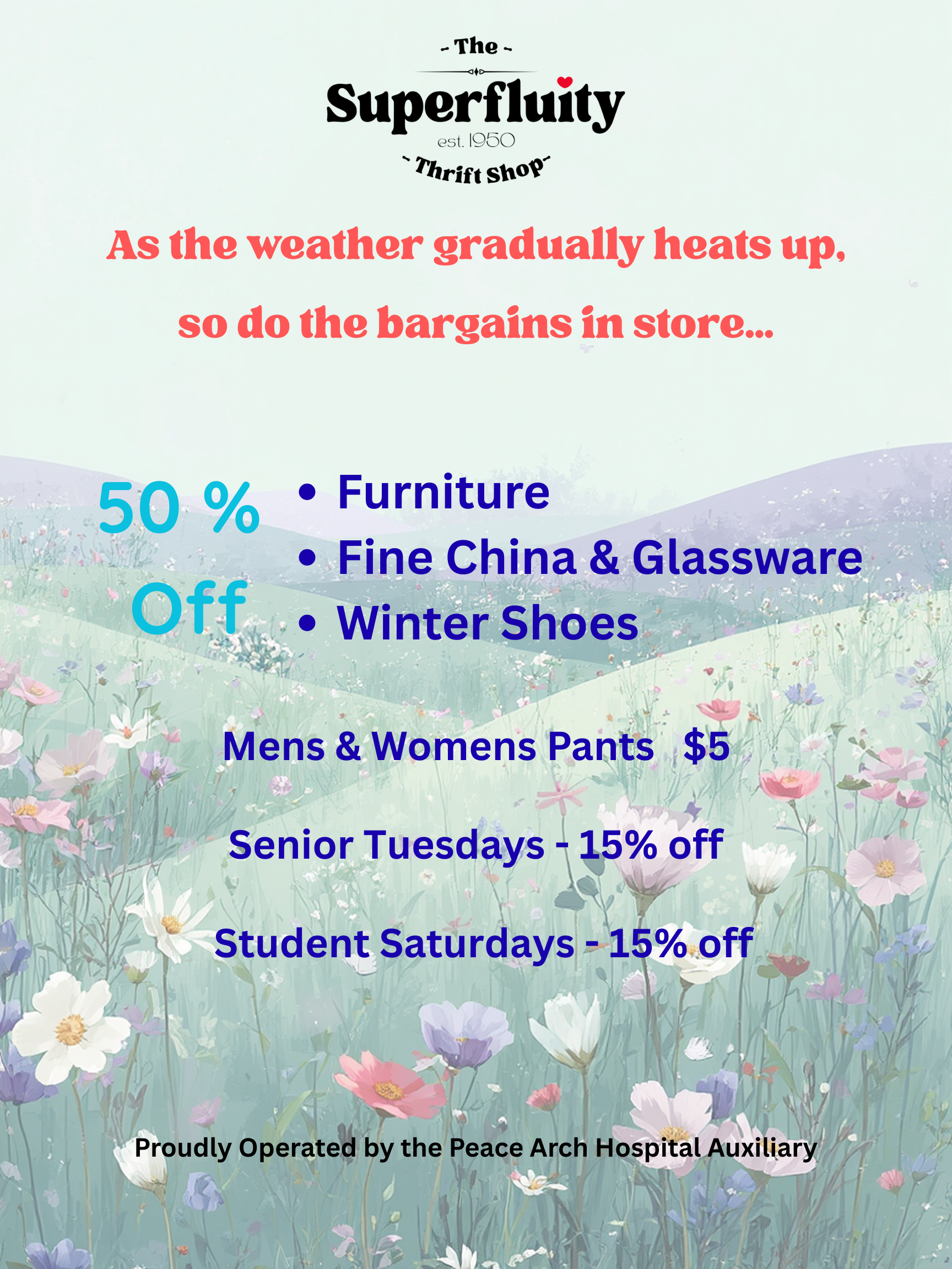 Since 1950, the Superfluity Thrift Shop, has led the circular economy in the White Rock region. Our volunteers have been processing donations and distributing valuable goods for over 70 years!